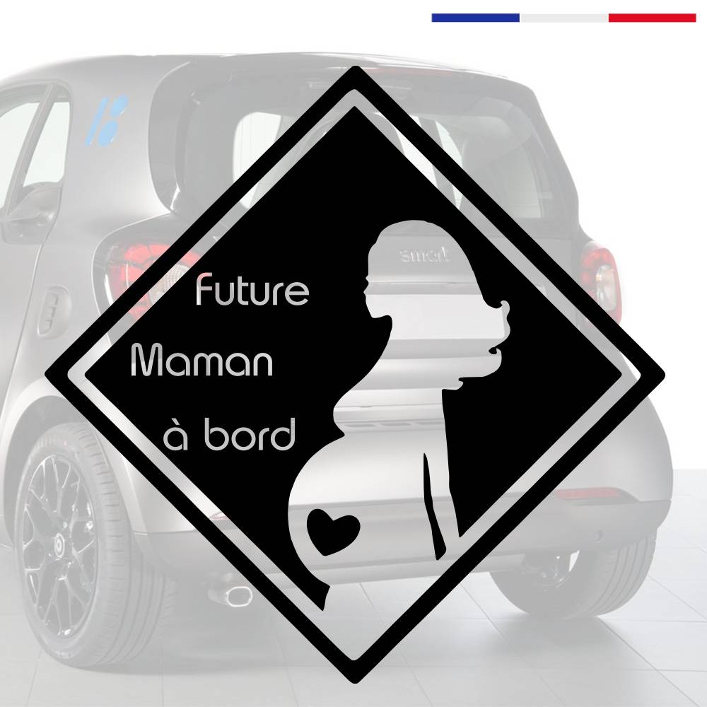 Découvrez ce magnifique sticker Future maman à bord à coller sur votre voiture. Très facile à poser grâce à un film de transfert déjà posé permettant de poser le sticker sans bulles et sans déformations. Disponible en noir et blanc.