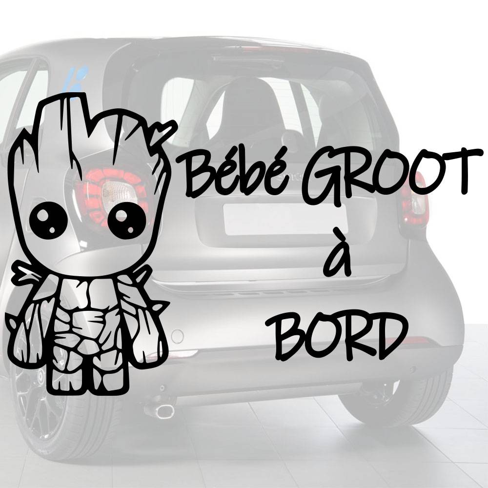 Découvrez ce magnifique sticker Bébé Groot à Bord à coller sur votre voiture. Très facile à poser grâce à un film de transfert déjà posé permettant de poser le sticker sans bulles et sans déformations. Disponible en noir et blanc.
